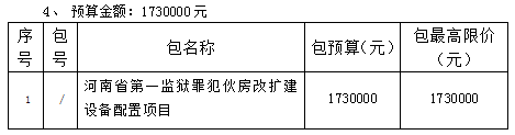 河南省第一监狱罪犯伙房改扩建设备配置项目招标公告