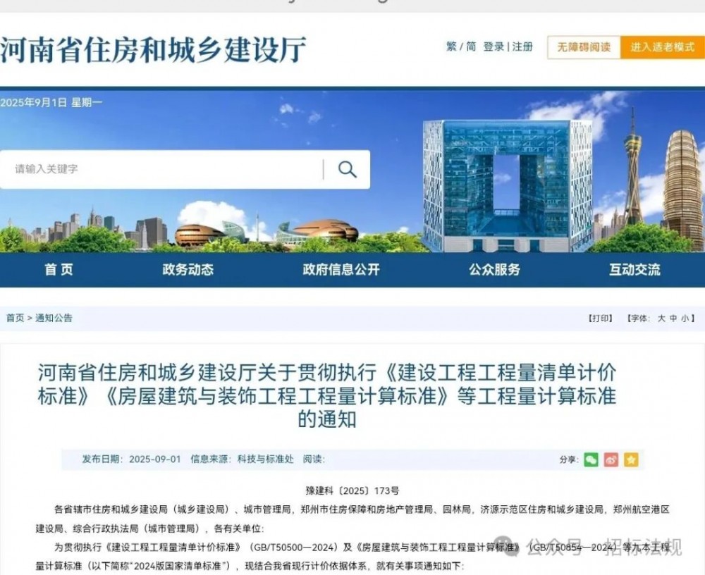 河南住建@9月1日《建设工程工程量清单计价标准》(GB/T50500—2024)